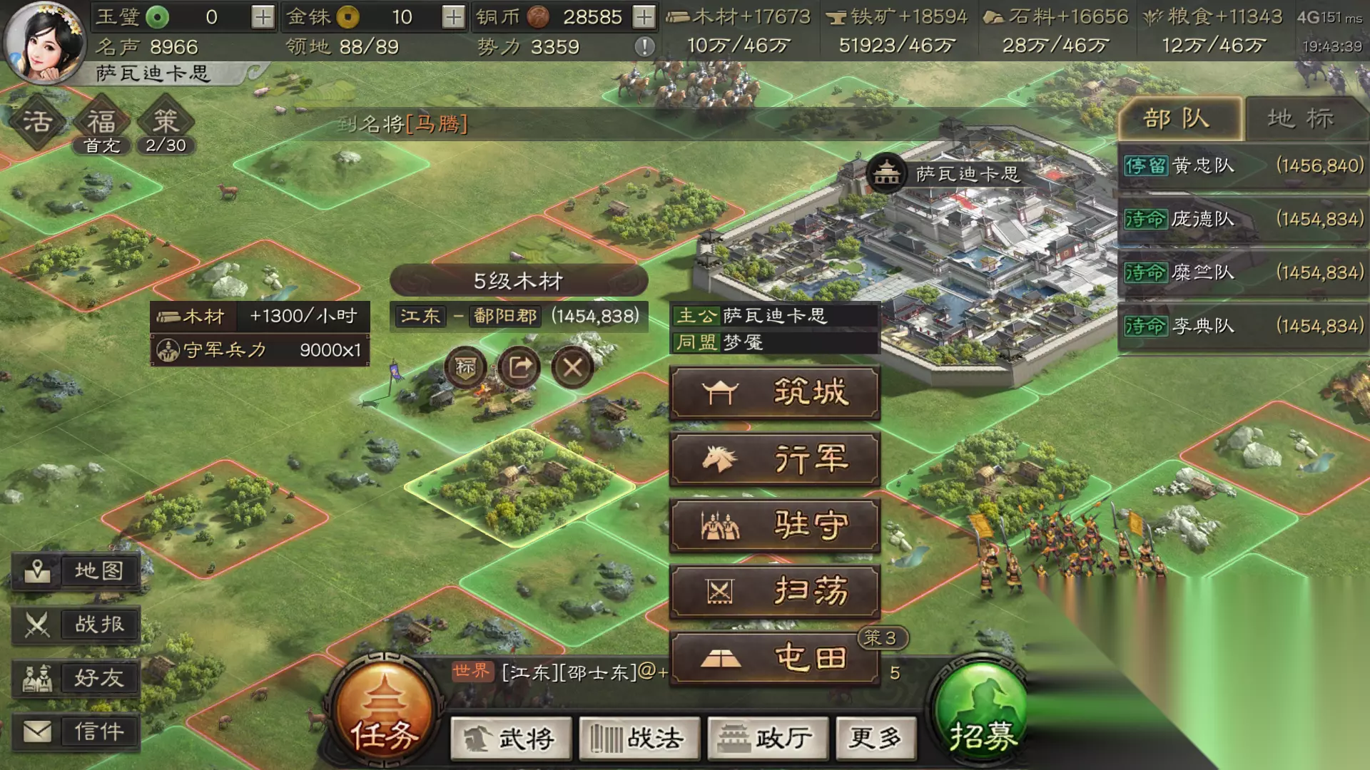 部队集结:汇聚力量的艺术 成为太守后,你便获得了组建军团的资格。首先需要通过自己的主城进入大地图界面,找到你所管理的郡城。在郡城操作界面中,那个醒目的“集结”按钮就是你召唤同盟力量的起点。 点击集结后,你可以向全体同盟成员发出部队征集令。收到指令的成员可以将自己的精锐部队派往郡城集合,但要注意几个限制:处于免战状态的部队无法参与集结,这包括还在新手保护期、开启了闭城模式或者不幸成为俘虏的部队。每个郡城同时最多只能容纳5支来自不同玩家的部队,这些部队将在集结区等待你的检阅和筛选。