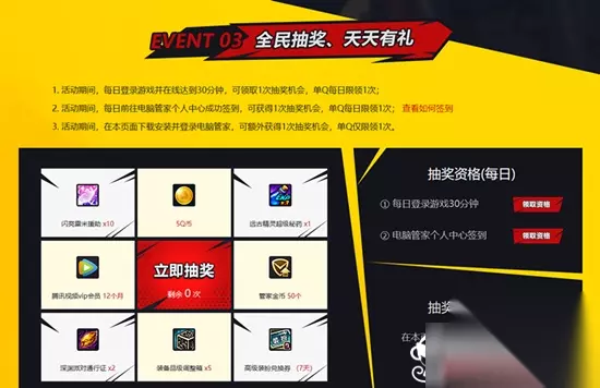 2、每日抽奖 在活动期间,玩家每天登录游戏并且在线时间达到30分钟,就可以在活动页面中进行抽奖。 奖励中没有谢谢参与这种坑爹的东西,所以大家是百分百能中奖的。但是这些奖励都比较垃圾,运气差的话估计抽到的都是管家金币。