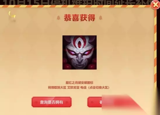 英雄联盟10月15号的维护补偿奖励是一个随机永久图标和一张3胜双倍经验卡,维护补偿奖励的领取地址是在官网的领取中心页面。每个QQ只能选择一个大区角色领取补偿奖励。随机永久图标奖励包含腥红之月图标。