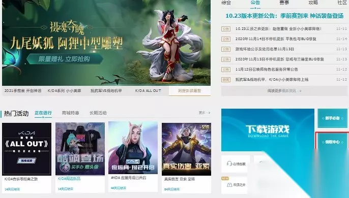 首先玩家进入英雄联盟官网,在官网页面中点击下载游戏右边的领取中心按钮即可打开领取中心页面,玩家可以在领取中心页面中领取10月15号的维护补偿奖励。英雄联盟10月15号维护补偿奖励的领取日期已于2020年10月28日截止。
