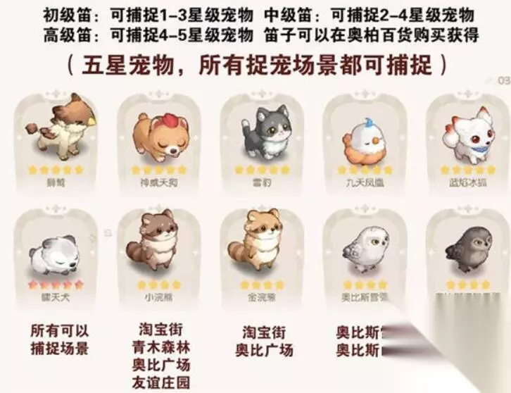 5、五星宠物 狮鹫、神威天狗、浣熊、哮天狗、金浣熊、九天凤凰、蓝焰冰狐、雷豹、雪虎