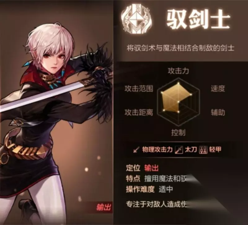 二、背景故事 帝国曾经流传着一种被称为“驭剑术”的极致剑术,这种剑术的来源已不可考,据说是由一位剑神结合多种剑术与武技创造而出的,讲究瞬间出剑,具有极其恐怖的破坏力。 三、角色六维图