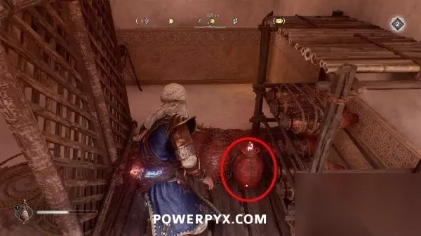 文章内容导航 装备箱#12-辛吉起义匕首/升级设计图 位于大病坊东侧屋顶上有一座塔楼,门上了锁。前往塔楼另一侧(北边),爬上栏杆将飞刀穿过窗户缝隙打碎门锁(需要站在栏杆上才能看到门锁),开门后往里走,移开架子即可开启装备箱。