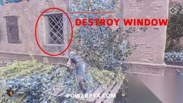 首先到土耳其浴场外的西北角,击碎可破坏的窗户。