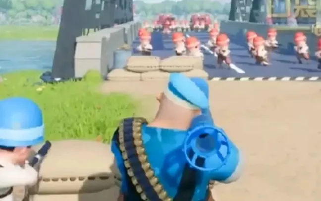 这是一篇关于《口袋奇兵》的游戏杂谈,展示了游戏里的满级夹子玩法,呈现了游戏中红蓝阵营对战的趣味场景,还出现了趣味的游戏变身、搞怪元素,充满欢乐感。