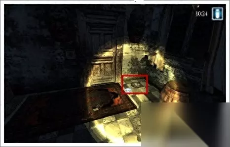 9、再次向左边移动视角,发现了一扇门,但是打不开,拖开门下地毯找到一个机关。