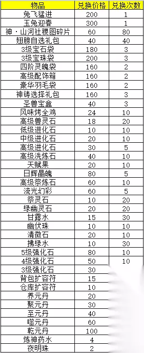 38、珍宝阁限时礼包上架 活动时间:1月28日至2月1日 活动内容:限时新年转盘礼包上架。 39、春节幸运大转盘累计参与活动 活动时间:1月28日至2月1日 活动内容:活动期间累计幸运大转盘达到指定次数便能够领取一份对应奖励。 【活动期间累计参与10次幸运转盘】凝魂药水*2,银票*2,2级强化石*1,新年抽奖券*1 【活动期间累计参与30次幸运转盘】凝魂药水*4,银票*4,2级强化石*2,新年抽奖券*2 【活动期间累计参与50次幸运转盘】凝魂药水*6,银票*6,2级强化石*3,新年抽奖券*3 【活动期间累计参与100次幸运转盘】培婴药水*3,玉如意*3,3级强化石*5,新年抽奖券*4 【活动期间累计参与150次幸运转盘】培婴药水*4,玉如意*4,3级强化石*8,新年抽奖券*5 【活动期间累计参与200次幸运转盘】培婴药水*5,玉如意*5,3级强化石*10,新年抽奖券*10 【活动期间累计参与300次幸运转盘】归元药水*4,金砖*4,4级强化石*10,新年抽奖券*15 【活动期间累计参与400次幸运转盘】归元药水*6,金砖*6,4级强化石*15,新年抽奖券*20 【活动期间累计参与500次幸运转盘】归元药水*8,金砖*8,4级强化石*20,新年抽奖券*25 【活动期间累计参与600次幸运转盘】炼神药水*10,金砖*10,5级强化石*30,新年抽奖券*30 【活动期间累计参与700次幸运转盘】炼神药水*15,金砖*15,5级强化石*50,新年抽奖券*35 40、极乐净土 活动时间:1月28日至1月29日 活动内容:活动期间累计充值元宝达到指定数额便能领取一份对应奖励。 活动奖励: 【活动期间累计充值1000元宝】极乐净土碎片*30,玄武斗木令*5,玄武牛金令*5,玄武女土令*5 【活动期间累计充值2000元宝】极乐净土碎片*50,玄武女土令*15,玄武虚日令*15,朱雀井木令*15 【活动期间累计充值3000元宝】极乐净土碎片*90,玄武女土令*15,玄武虚日令*15,朱雀井木令*15 【活动期间累计充值5000元宝】极乐净土碎片*180,朱雀井木令*30,朱雀鬼金令*30,白虎昴日令*30 【活动期间累计充值7000元宝】极乐净土碎片*200,朱雀井木令*60,朱雀鬼金令*60,白虎昴日令*30 【活动期间累计充值9000元宝】极乐净土碎片*240,白虎昴日令*30,青龙心月令*30,青龙房日令*30 【活动期间累计充值12000元宝】极乐净土碎片*280,白虎昴日令*60,青龙心月令*60,青龙房日令*60 41、战神时装 活动时间:1月30日至1月31日 活动内容:活动期间累积充值达到指定金额便能够领取一份对应奖励。 活动奖励: 【活动期间累计充值1000元宝】银票*3,岩铁地魄*3,凝魂药水*3,战神幻盔*1 【活动期间累计充值2000元宝】玉如意*3,琅环碧玉*3,培婴药水*2,战神幻靴*1 【活动期间累计充值3000元宝】金砖*2,蟠龙玛瑙*2,培婴药水*3,战神幻甲*1 【活动期间累计充值4000元宝】金砖*3,蟠龙玛瑙*3,归元药水*2,战神幻兵*1 42、捣药玉兔 活动时间:2月1日至2月2日 活动内容:活动期间累积充值达到指定金额便能够领取一份对应奖励。 活动奖励: 【活动期间累计充值1000元宝】中级兽灵石*2,蜜汁鸡腿*2,金砖*2,兔宝宝碎片*25 【活动期间累计充值2000元宝】中级兽灵石*3,蜜汁鸡腿*3,金砖*3,兔宝宝碎片*25 43、限时祈福送大礼 活动时间:2月1日至2月5日 活动内容:活动期间累积老君祈福达到指定次数便能够领取一份对应奖励。 活动奖励: 【玩家老君祈福1次】银票*1,凝魂药水*1,祈运符纸*1,祈福拂尘*1 【玩家老君祈福5次】银票*2,凝魂药水*1,祈运符纸*1,祈福拂尘*1 【玩家老君祈福10次】银票*2,凝魂药水*2,祈运符纸*2,祈福拂尘*1 【玩家老君祈福30次】玉如意*1,培婴药水*1,祈运符纸*2,祈福拂尘*2 【玩家老君祈福50次】玉如意*2,培婴药水*1,祈运符纸*3,祈福拂尘*2 【玩家老君祈福80次】玉如意*2,培婴药水*2,祈运符纸*3,祈福拂尘*3 【玩家老君祈福100次】玉如意*3,培婴药水*2,祈运符纸*4,祈福拂尘*3 【玩家老君祈福150次】金砖*1,归元药水*1,祈运符纸*4,祈福拂尘*4 【玩家老君祈福200次】金砖*2,归元药水*1,祈运符纸*5,祈福拂尘*4 【玩家老君祈福250次】金砖*2,归元药水*2,祈运符纸*5,祈福拂尘*5
