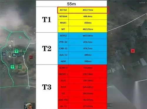 三、55m T1 1、M16A4:拥有强大的输出能力和远程攻击能力,能够提供火力支持,但是射速慢和弹夹容量有限。 T2 1、CAR-15:拥有高威力,单发伤害惊人,适合中远距离作战,可以通过改装使其操控性、稳定性和射速有所提升。 T3 1、AUG:后坐力较小并且有着良好的射程,适合中远距离进行作战,射速较低,可以通过改装来改变。 四、综合榜一览