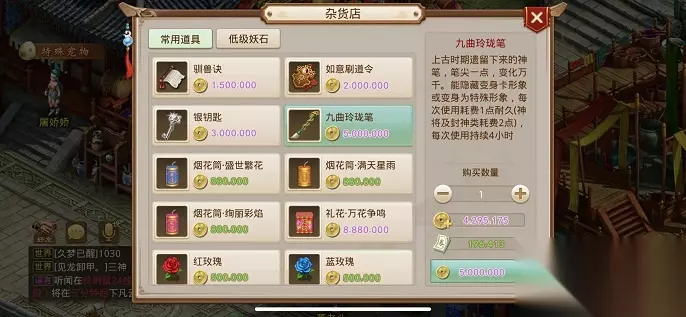 问道九曲玲珑笔购买地点 道友们可在杂货店花费5,000,000文钱或代金券购买九曲玲珑笔。