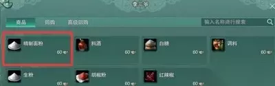 5.【精制面粉】是直接向npc购买的,一般在烹饪调味品商和酱料商那里可以买到,60银一份,一次一份就够了。