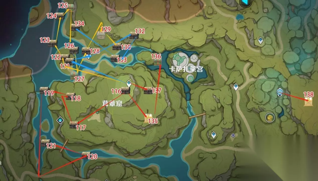 原神须弥宝箱全收集——【116-138篇】如下: 哈喽大家好,这里是喵探。本期为大家带来宝箱篇116-138的宝箱收集。 首先是总览图