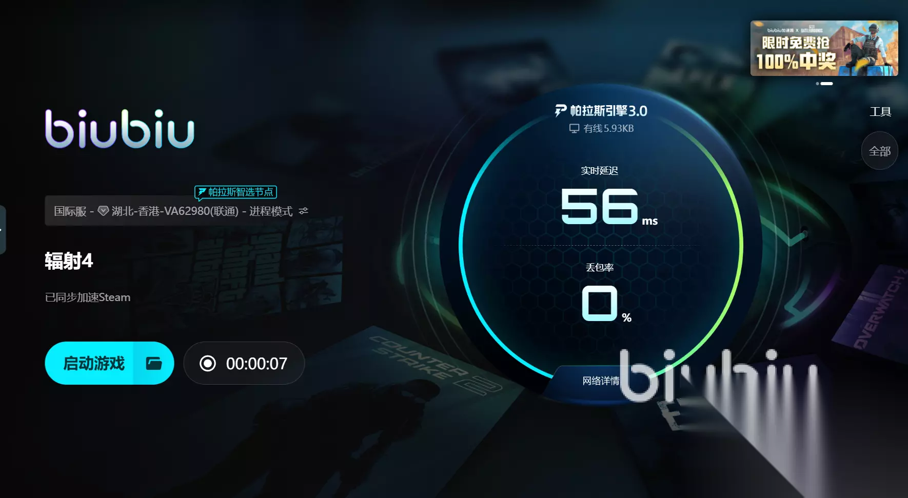 解决问题不能只靠删MOD或重装游戏,关键在于让数据通道顺畅。biubiu加速器能针对Steam平台进行通用加速,通过优化网络路径来减少加载阻塞。新用户注册后即可获得二十四小时加速时长,在客户端首页输入口令【biubiu不卡顿】还能额外领取七十二小时。三天的完整体验足够覆盖从下载安装到游戏运行的全过程,尤其适合想彻底摆脱闪退卡顿困扰的玩家。