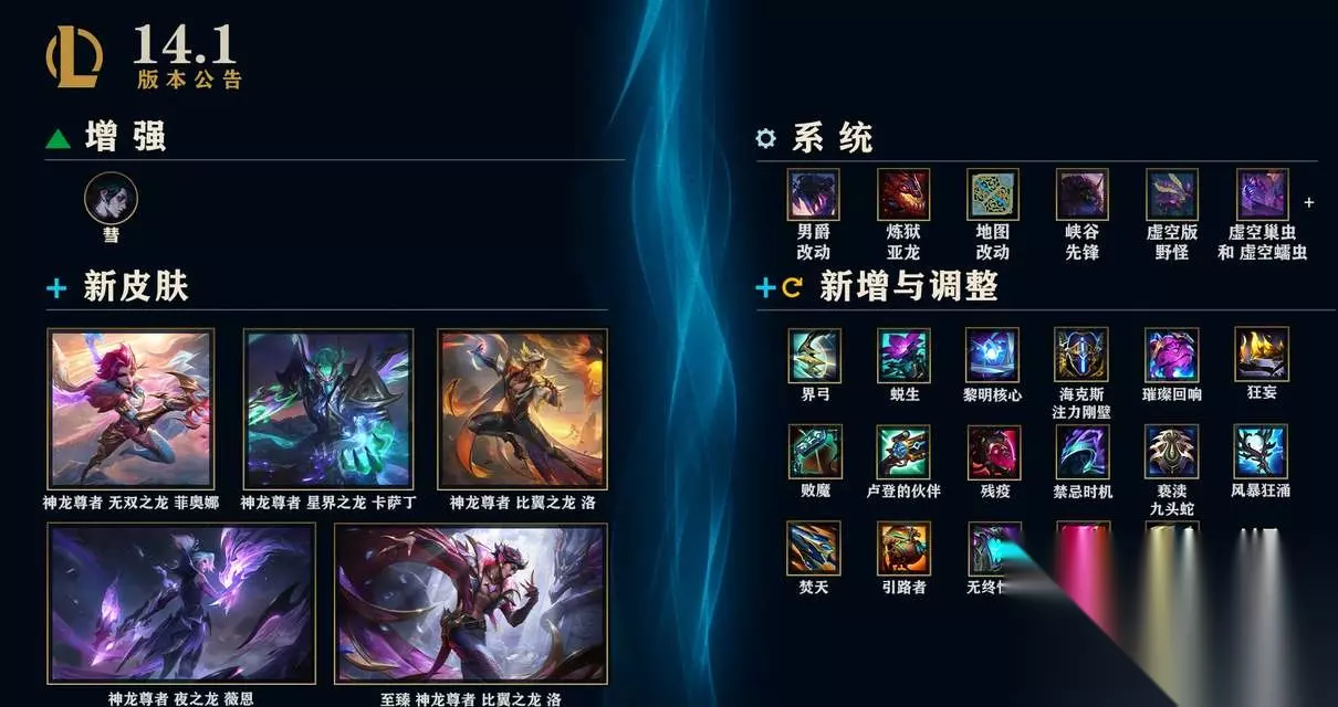 3、s14赛季删除了神话装备系统,新增了大量的装备,同时游戏内的地图野怪以及地形等都进行了调整,具体的调整内容以及影响大家可以在官方的更新公告中查看。
