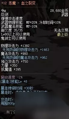不得不说DNF策划的真爱搞,这装备生下来就是搞笑的,和玛尼神兽项坠平分秋色。 NO.10 鲜血之痕巨剑