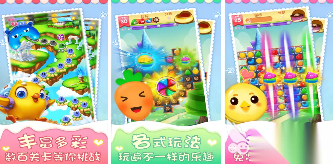 玩家可以通过滑动的方式来交换方块,然后使方块连成三个或者三个以上进行消除。为了增加游戏的趣味性,还会提供多种特色道具供所有玩家使用,是一类比较休闲的小游戏。鉴于很多玩家都喜欢这种三消游戏,今天小编就给大家介绍几款。 1、《开心消消乐》
