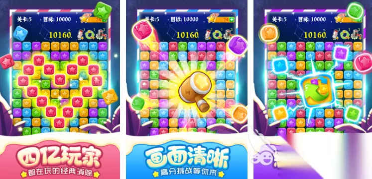 《天天爱消除》采用的是萌系画风,所需要消除的图案都清新可爱,同时再搭配上烟花和流星等炫目的特效,为玩家带来了很强的视觉冲击力。目前共有5000多个海量的关卡,包含剧情主线和无限挑战等多种模式,而独特定位功能还可以让玩家查看附近的排名,通过丢纸条的方式互动。喜欢宠物的玩家也可以在其中领养宠物,让宠物帮助你闯关。 扫码下载该游戏 高速下载 普通下载 优先233乐园APP下载 5、《消灭星星全新版》