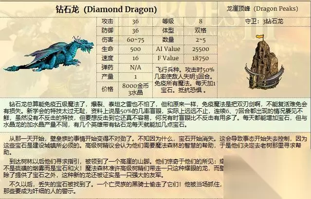 钻石龙比起金龙来,提升特性也不算是特别变态的一个。 原本免疫4级魔法终于变成了免疫5级,不过这个提升似乎也不是特别有用。 每天增加1个宝石,这个的确有点价值,但也不是特别大。 攻击时50%概率让敌人失明3回合......这个特性的作用就很大了。比起独角兽已经翻了一倍的概率。 再加上通用的抵抗恐惧,整体来讲钻石龙的特性提升和神圣大天使类似,都属于有用很强,但是和最厉害的比还差一些。