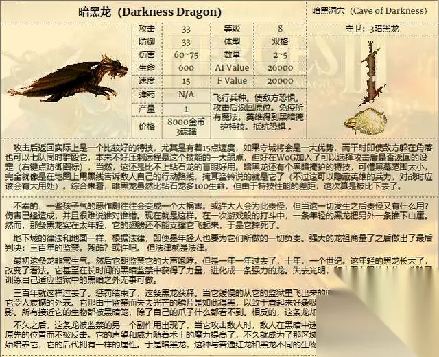 虽然暗黑龙的属性增强很多,但是如果看特性的话。暗黑龙反而是增加最少的那个。 使对方恐惧这个特性虽然强,但是在8级兵都能抵抗恐惧的情况下价值被大大降低了。而给英雄增加黑暗掩护和抵抗恐惧这两个特性基本上都是没啥太大用途和大家都会的大路货。 唯一一个还算有用的新增特性,则是鸟身女妖的特性攻击后返回。 但是放到8级兵里,这个有用其实也是没啥意义的。 当然,因为基础属性较高,所以虽然特性一般般,但是暗黑龙的实战能力还是不弱的。