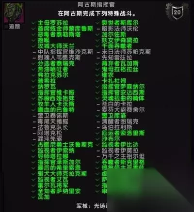 这个很多人在找稀有的成就叫做“阿古斯指挥官”,一共61只稀有怪,全部击杀后奖励军械:光铸武器