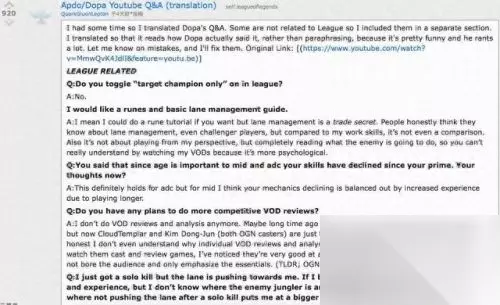 那么在单双排模式下,哪一个位置才是最好冲分的呢? 最近dopa在直播的时候回答了一个关于他的访问,当然这个访问与我们平时看到访问有些不同,是网友在油管的某个视频下方进行评论,Dopa随机抽取一些问题进行在线回答,而他回答问题的这个视频也被一个叫QuarkGluonLepton的网友翻译了出来,其中就有不少是关于Dopa如何看待单双排的内容。