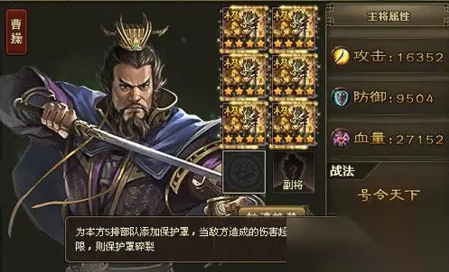 曹操作为核心武将,其装备搭配需要兼顾攻防平衡与技能增益。推荐使用真霸下套装或真驱虎套装,前者侧重防御与生存能力,后者强化战法输出与先手优势。装备属性优先选择强攻、强防和血量加成,确保曹操在释放号令天下战法时能稳定提供团队护盾。武器建议选择高统御加成的类型,配合珍宝系统中的护罩类宝物可大幅提升战场容错率。