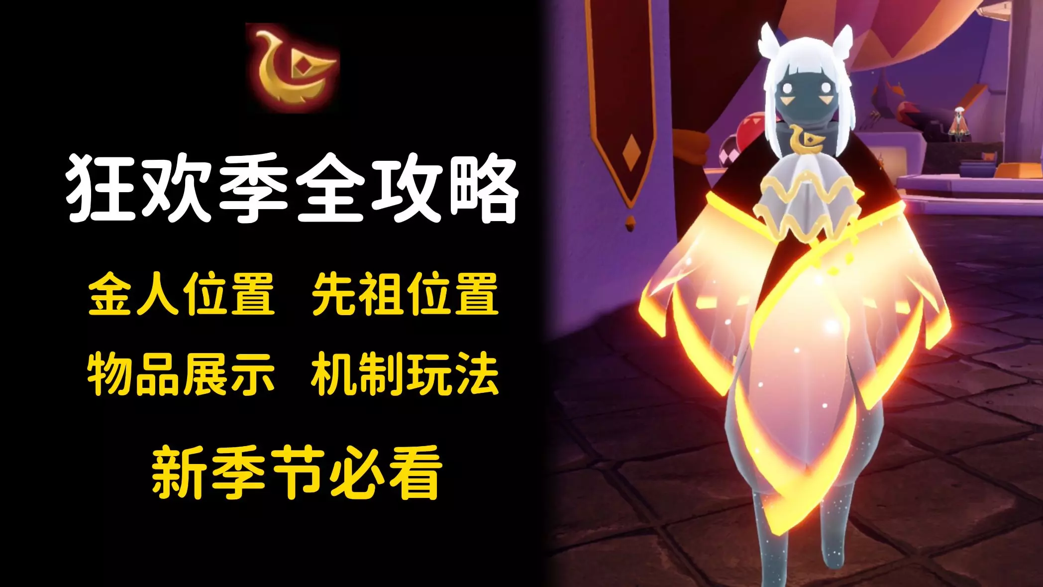 这是冒险游戏《光遇》狂欢季的攻略内容,展示了狂欢季的特色场景,还详细介绍了四位先祖的位置与获取方式,同时包含挑战设计发布的操作指引,助力玩家玩转光遇狂欢季。
