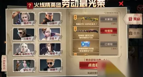 五一活动期间,登录游戏获取一次抽卡机会,赢得一局团队模式获取一次抽卡机会,以及完成一次贡献卡片获取一次抽卡机会。前两个任务非常简单,小编就不再赘述了,最后一个任务就是分享卡片给好友,即可完成。 注意!完成任务是可以获得抽卡机会,并不是可以直接获得卡片。有了抽卡机会,我们就能去抽卡了,奖池中包含:暗夜卡、白狼卡、刀锋卡、灵狐卡、审判者卡、零匪卡、萝拉卡和铁骑卡。 集齐4张卡片:商场抵用券300钻石、100赏金令积分。 集齐6张卡片:马来剑-毁灭(5天)、惨叫鸡积分100。 集齐8张卡片:凤凰之力(永久) 相关精彩推荐: CF手游2019五一劳动节活动玩法攻略汇总 CF手游新版本血月模式怎么玩?