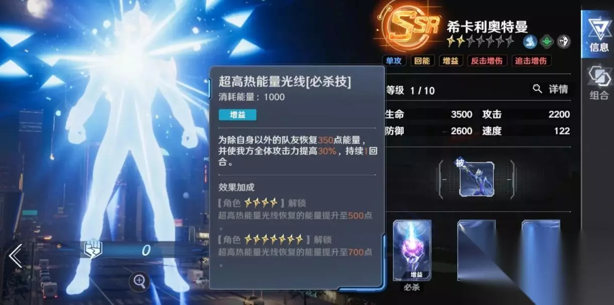 辅助排行榜: T0: 希卡利,完美辅助代名词,集回能、加攻、加暴击于一体,可以全面提升队伍的输出效率,哪怕是部分增益指挥持续1个回合,但依非常强,适配任何输出阵容。 T1: 亡灵基纳,加攻加暴,和希卡利类似,但是缺少群体回能,不过依然强势,而且新手十连里就有几率获得,对新人来说性价比很高,可以无脑用。 赛罗月神奇迹型,生存辅助的天花板,可以分担伤害并提升全队的输出,可以显著提高队伍的容错率,高难副本中的价值更高。 盖亚至高型,名义上输出,但实际更偏向于控制,普攻和技能都可以控制,登场直接限制敌方多个单位,在pvp和高难挑战中都有很强的表现,是顶级辅助。