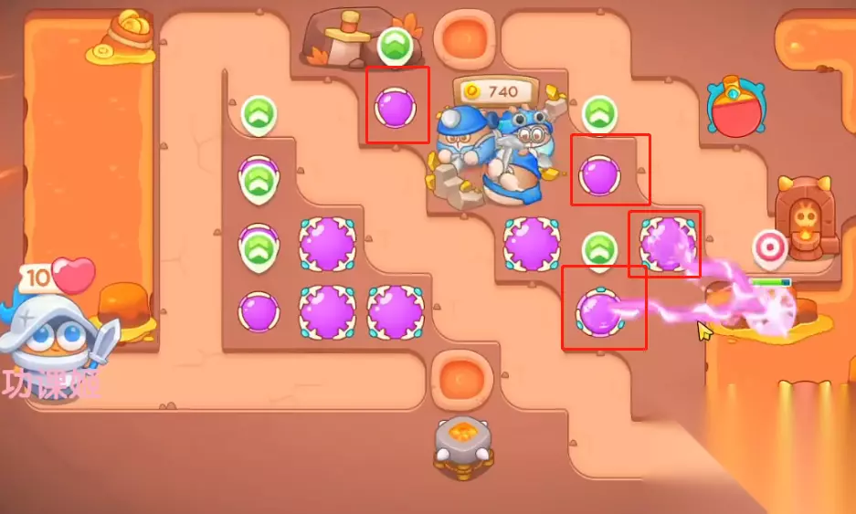 保卫萝卜4饿龙传说45关攻略 1、进入游戏建造电磁炮并升级。