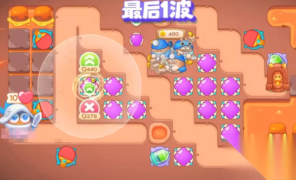 7、如图所示为最后一波阵容,省下来的钱可以升级炮塔或者安置其余炮塔就可以过关。