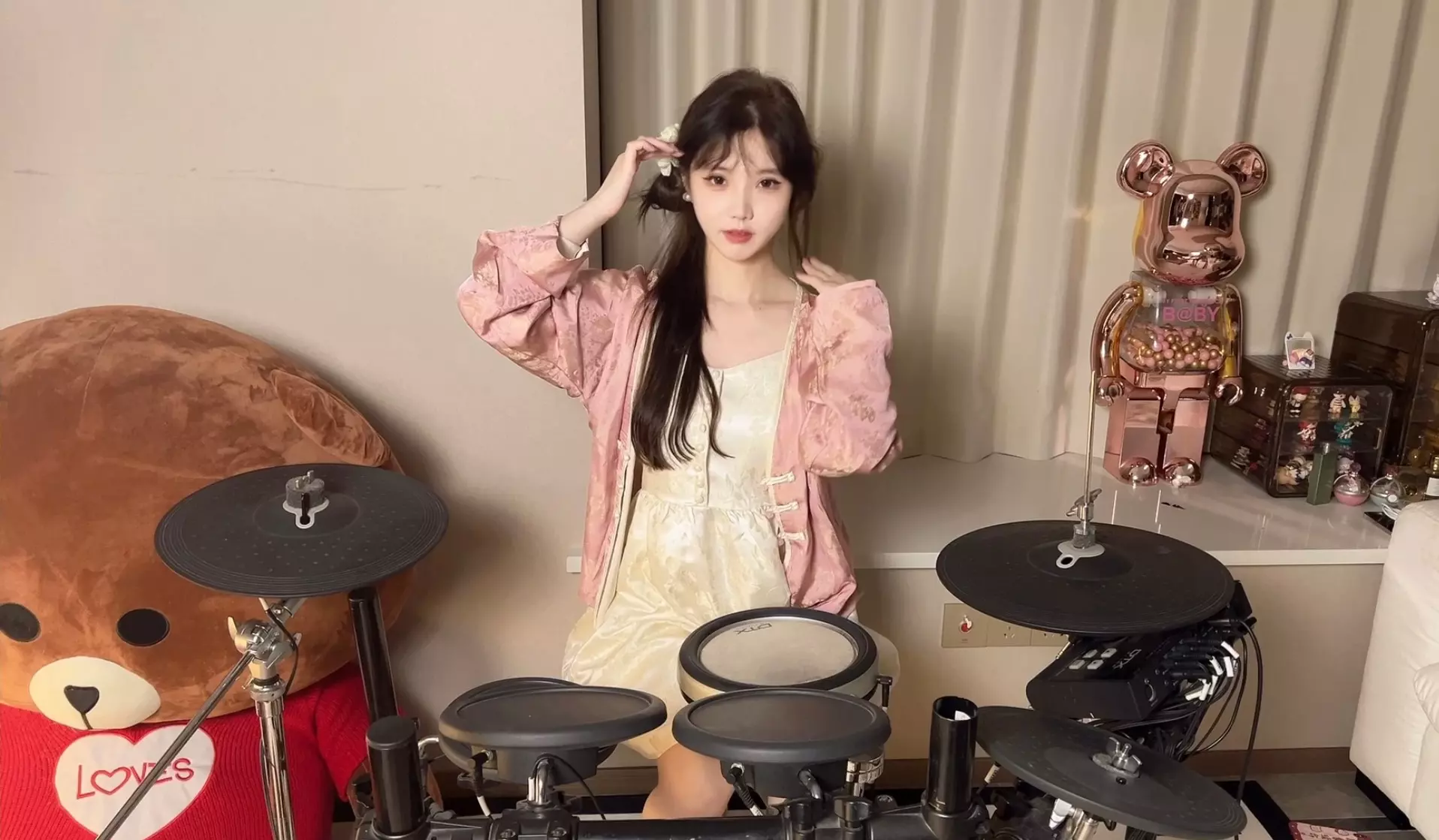 这是夜愿神曲演奏第三弹,博主身着华丽复古服饰,带来《Ghost River》的架子鼓演奏,呈现出极具氛围感的演奏现场。