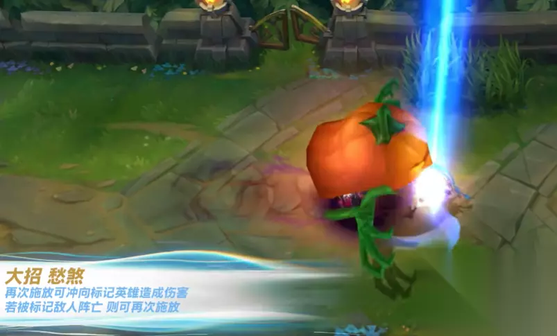 其中第三个技能在黑影到达指定位置并炸开的时候,不仅会有小蝙蝠的出现,地上还会留下一个万圣南瓜的图案,不过几秒后就会消失。而大招是这些技能中特效变化最为明显的。