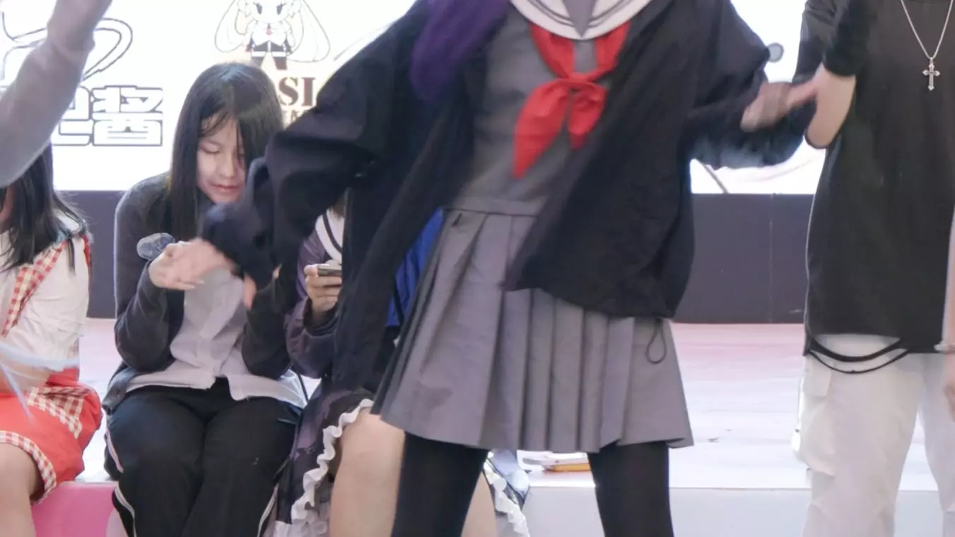 这是一场《偶像梦幻祭》主题的线下活动,现场有多位coser扮演游戏角色,在舞台上进行表演,还有不少同好在场下观看,氛围热烈。