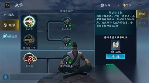 崩山打 黄色霸体,向前打出一记重拳,判定强但距离短,前摇长,基本在对方招式打出时反手打才能打中,反手最强。装备炼蝎后可解锁绝学崩山打·碎,可续力(未测试)。可接轻击前进攻击,可接连招,第二下打飞到地。一般轻击一下后接其他技能。重击将对方击飞,浮空低,无法接技能,不推荐。