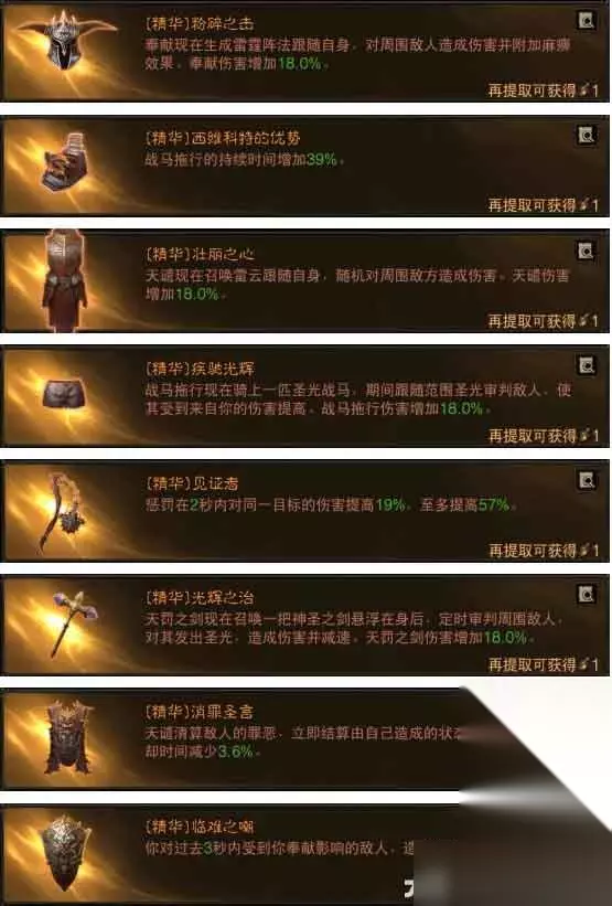技能推荐:奉献、审判、天谴、战马拖行、普攻惩罚 BD简介:对于平民玩家来说护肩带西维科特的优势39%骑马持续时间非常关键,这套搭配全词条仙法,2维图+护肩+裤子部位觉醒是一定可以做到无限骑马的,目前版本开放了装备附魔可以洗词条后更容易实现。 套装推荐:4安格美特2维图2男爵 四、圣教军雷霆结算流