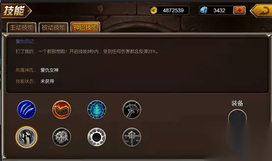 神启技能:复仇印记 打了我的,一个都别想跑!开启技能8秒内,受到任何伤害都会反弹25%