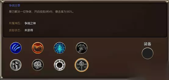 神启技能:争端狂暴 暴力解决一切争端,开启技能8秒内,暴击率100% 同时每位主神献祭到一定程度之后,玩家就可以学习到该主神的技能,每一个主神技能都有着强力的效果,或帮助玩家轻松获取大量资源,或帮助玩家竞技场所向披靡,绝对能让你在游戏中如虎添翼,实力更上一层楼,你是否也对这样强力的技能好奇不已呢,那就赶快到游戏中来亲身体验一下吧!好了今天就为大家介绍到这里。