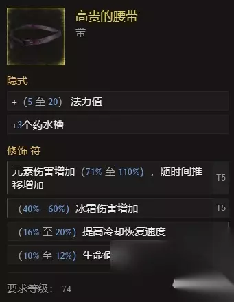 腰带: 腰带选择高贵的腰带,可以很好的建议冰属性伤害,同时增加角色的法力值储备量。