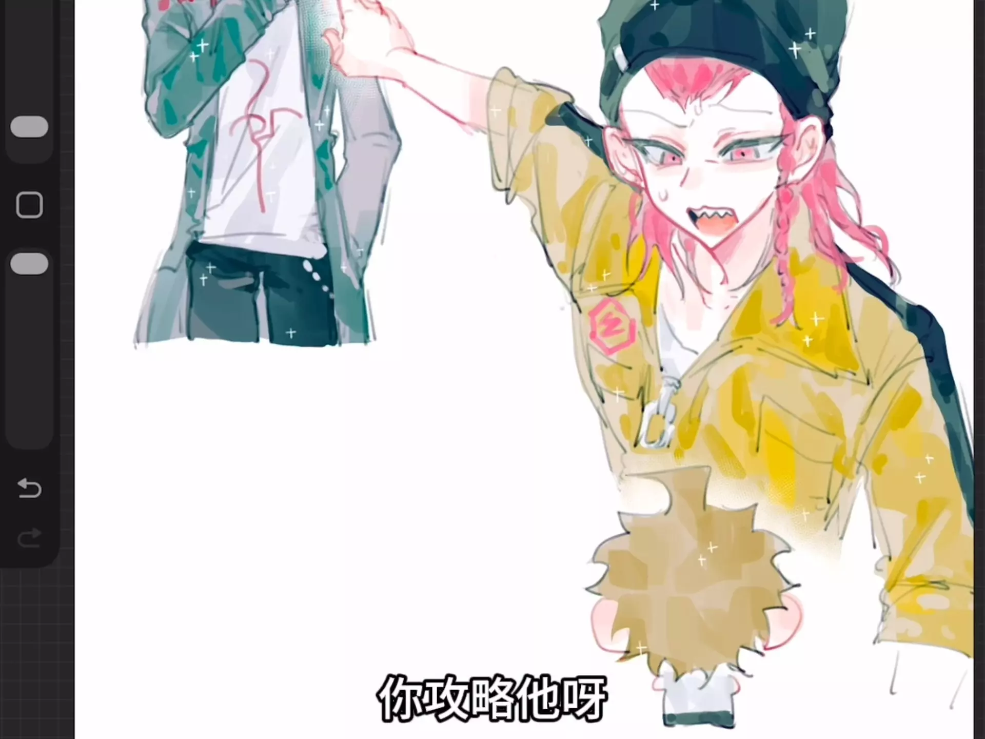 这是一组弹丸论破的趣味手绘,原标题标注为左右田和一前往学级裁判,实际内容是日向创和性别转换后的左右田和一接力奔跑赶往学级裁判,是弹丸论破的趣味二创作品。