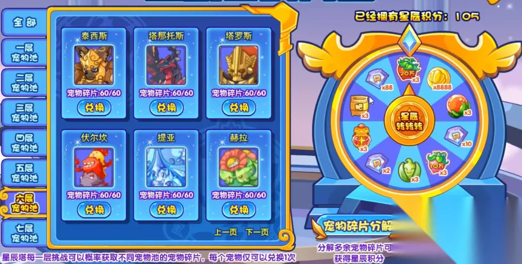 2、点击星辰试炼,选择六层宠物池。