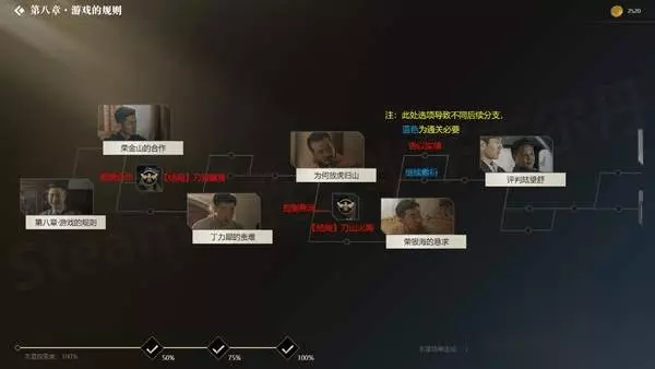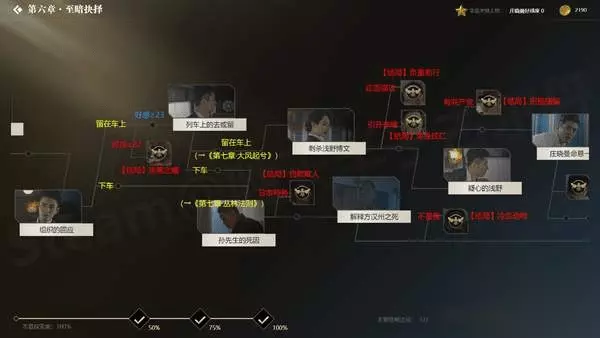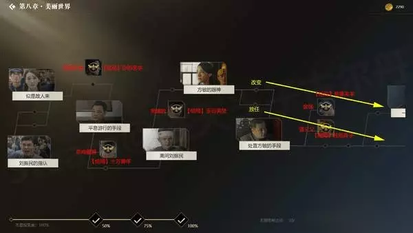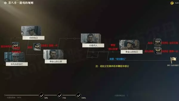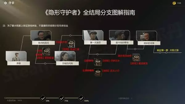 隐形守护者有很多的支线剧情以及结局,小编这里汇总了全部的支线和结局,希望对正在探索的玩家们有所帮助! 前言 本指南包括了目前(1~9章)所有结局的触发方式,以及所有重要分支的提示,旨在帮助大家达成各章节的100%探索度。 注意:为了最大程度上保证游戏体验,不重要的非结局分支均未标出。本指南也不适合一周目玩家作为攻略使用。 更改了之前的选项,但是跳往后面的故事线之后,选项又变回去了? 修改完选项之后最好继续前进1到2段剧情(按Q快进) 所有结局都解锁了,但是没有100%探索? 所有视频都需要完整看完,只进入视频然后立即跳故事线是不行的。另外所有结局上画了胡蜂标记才算达成,如果没有标记,重新进入该结局并完整看完(用Q跳到结尾也可以)。