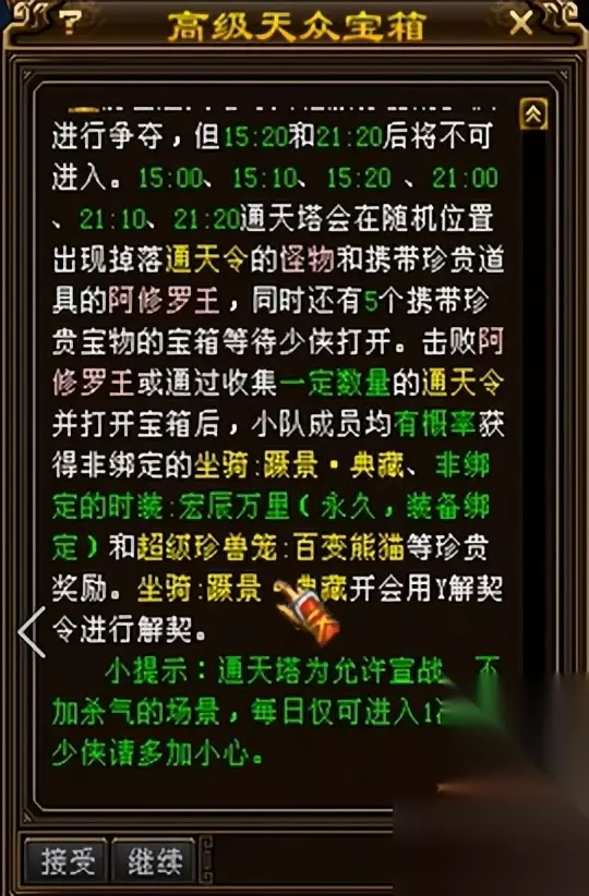 下面看看这个宝箱,通天令需要打BOSS才能获得噢!兑换还是需要积累