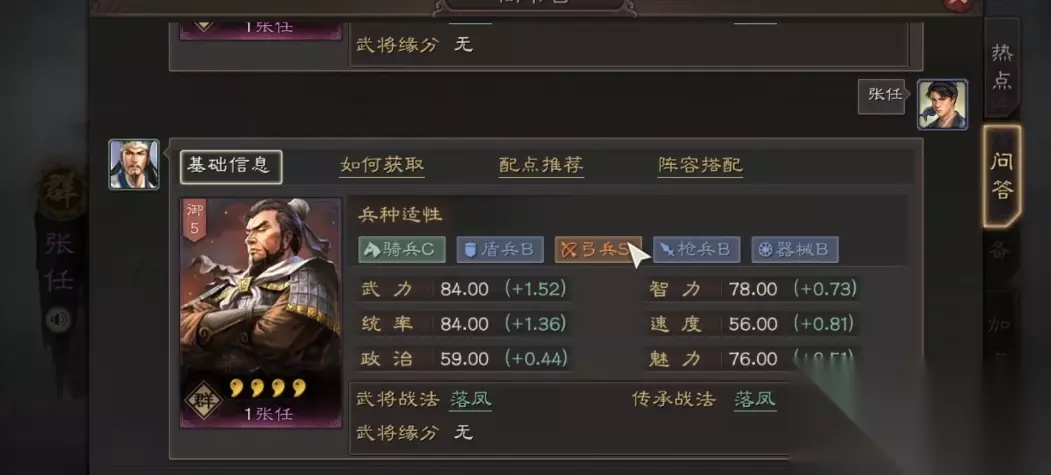战法搭配上,袁绍通常携带竭力佐谋+擎刀斫敌或文武双全+屠几上肉,张任绑定纵兵劫掠+落凤。前者侧重控场和增伤,后者补足爆发。注意袁绍的灼烧战法别和朱俊的无当飞军冲突,优先保证负面状态覆盖。张任全速加点抢先手,袁绍可适当分配武力与速度,确保队伍行动顺序合理。 这套阵容的强度依赖战法发动率,因此兵书神机(抢先手)和将威(暴击)是不错的备选。如果对手多慢速队,张任可带速战进一步提速;面对高爆发队伍时,袁绍的援其必攻能提高容错。记住核心逻辑:群弓不需要拖后期,兵书和战法都要为前四回合服务,压得住血线就赢一半。比如遇到双减伤队伍时,张任可换攻其不备破防;内战抢不过先手则改疾战突围跳准备回合。