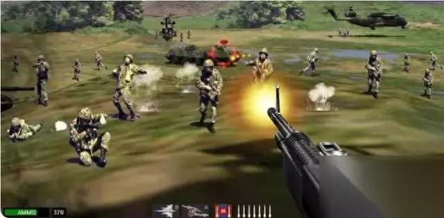 抢滩登陆2000 尽管游戏的画面比较粗糙,游戏中的某些单位也是使用2D位图呈现,但这种做法的好处是减少了游戏同屏中模型面数,以及大批敌人出现时给硬件带来的压力。在那个年代,游戏依然可以展现出不输给战争大片的视觉感,再加上主视角游戏带来的沉浸体验感,会让玩家有很强的身临其境的感觉。 抢滩登陆2000在发布后获得了市场的认可,并且在两年后推出了续作抢滩登陆2002。在续作中,玩家防守的场景从海岸变成了平原,武器也从双管机炮换成了重机枪,同时游戏中新加入的夜战模式也加大了游戏难度,这一作也更为大多数国内玩家所熟知。