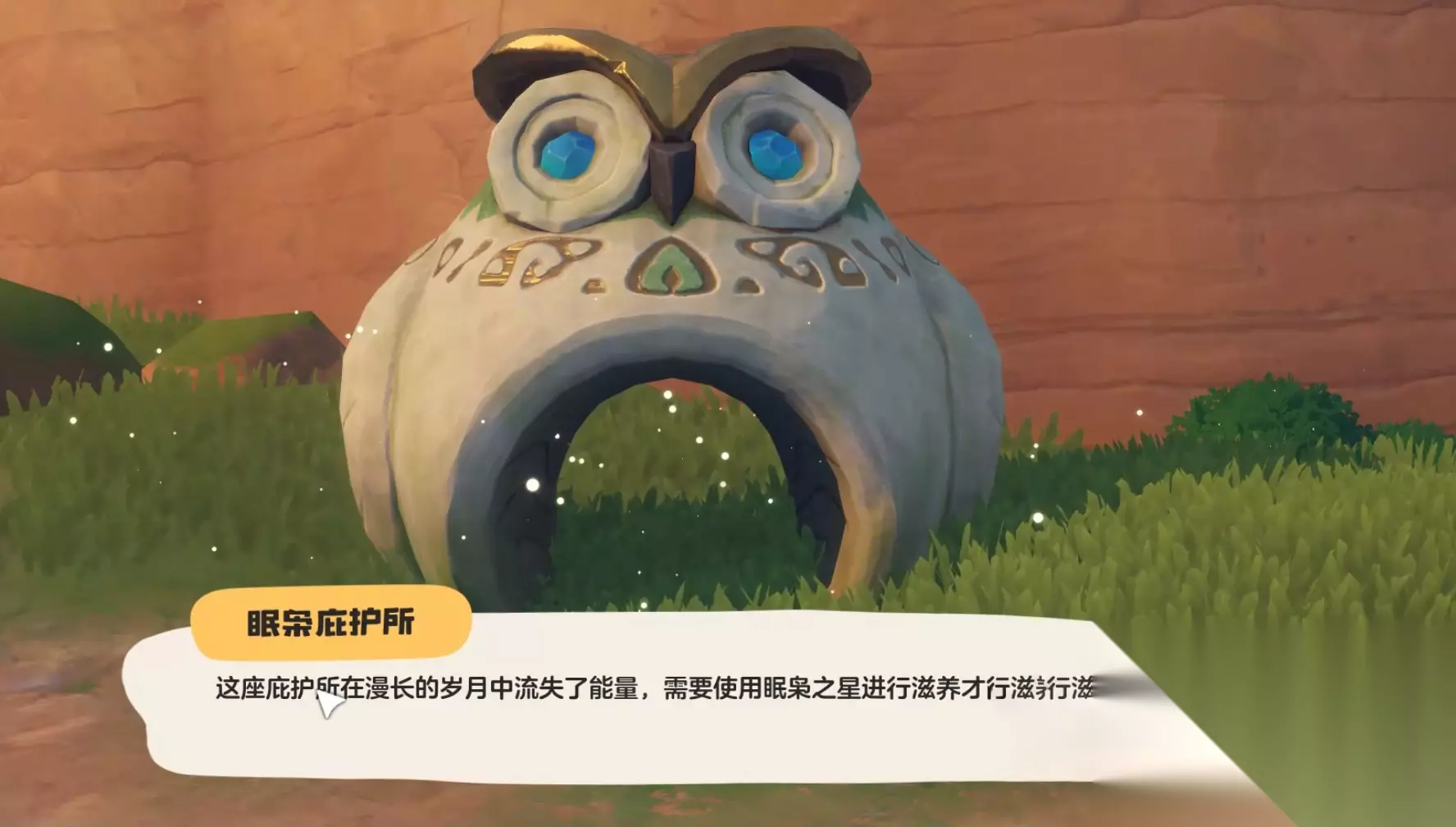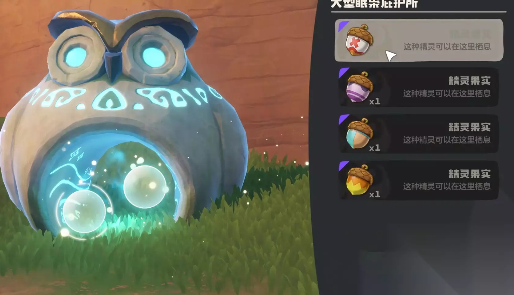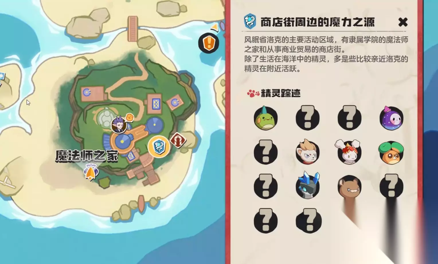 第一步,大家要打开地图,找到魔法师的商店街道,这里有一个魔力之源,接着再找到眠枭庇护所,刚看到这里的是没有任何反映的,原因是它需要眠枭之星字样才可以正常运作起来。而眠枭之星得到并不难,玩家在大地图中是可以轻松找到的,再激活了眠枭庇护所之后,玩家就可以将自己得到的精灵果实放进去了,根据不同的外观判断最终得到的是哪种精灵。