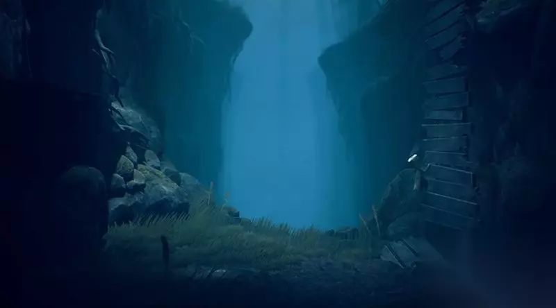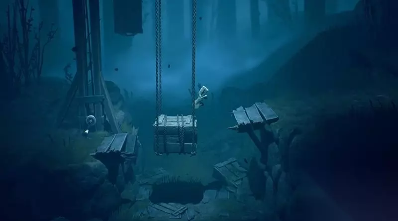 收集完影子后返回,沿着坠落的吊桥木板爬上悬崖。