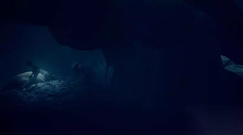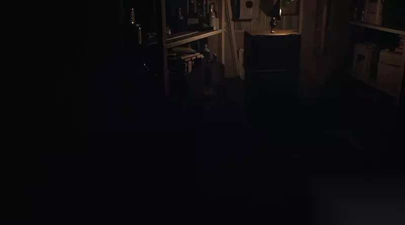 待猎人照向他处后赶紧钻过右侧地洞。