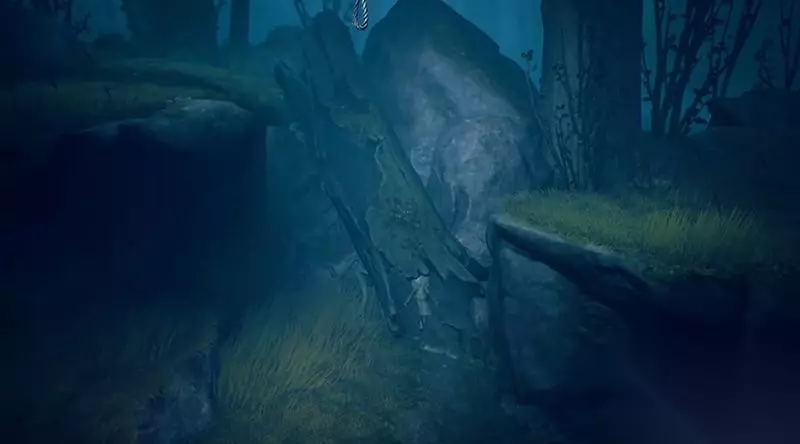 继续前进,小心绕开猎人陷阱。 在树洞前会看到一根树枝夹在陷阱中,取下这根树枝。