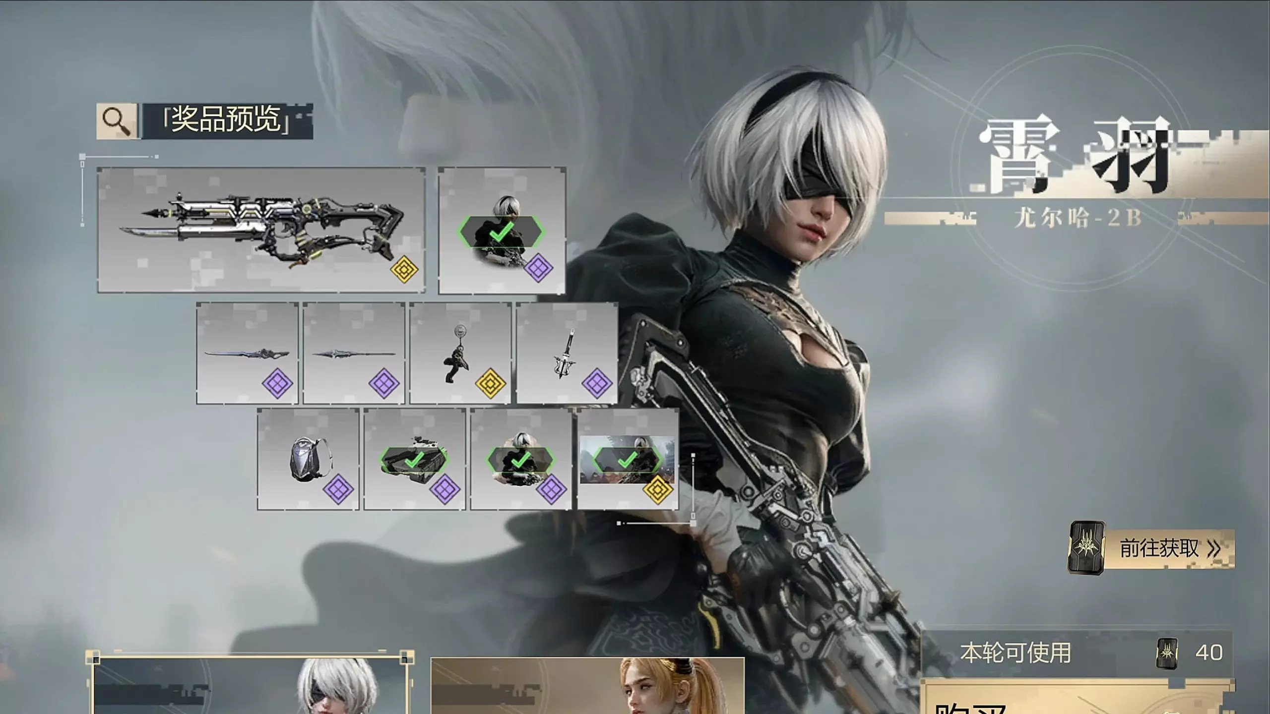 这是FPS游戏《使命召唤手游》和尼尔的联动活动,玩家可通过购买尼尔专属使命卡片、参与超值返利周卡活动,抽取联动的尤尔哈2B角色及配套武器等奖励,展示了抽奖奖池及抽取过程。