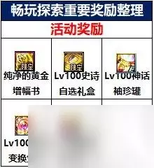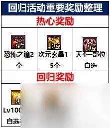 【玩法简介】 达成活动中的每日任务、每周任务以及挑战任务后,可以提升畅玩等级,获得等级奖励与畅玩探索币,畅玩探索币可在活动NPC处兑换各种道具奖励。 3.冒险家回归活动 【主要奖励】